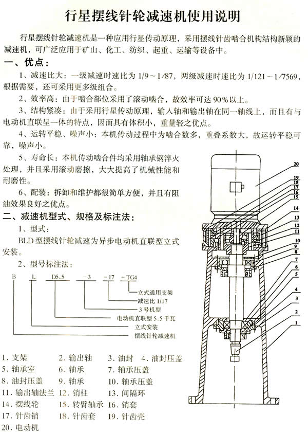 行星擺線針輪減速機是一種啟用行星移動原理,采用擺動線針齒嚙合機構(gòu),結(jié)構(gòu)新穎的減速機,它的優(yōu)點是:減速比大,效率高,結(jié)構(gòu)緊湊,運轉(zhuǎn)平穩(wěn),壽命長,噪音低??蛇m用于各種流體,非流體介質(zhì)的攪拌,輸出轉(zhuǎn)速由10轉(zhuǎn)/分---140轉(zhuǎn)/分,范圍內(nèi)任意選擇。功率匹配為0.25KW--45KW??勺鳛榛?、建材、陶瓷、醫(yī)院、橡膠、造紙、食品加工、釀造、日化等行業(yè)容器攪拌的動力源。
